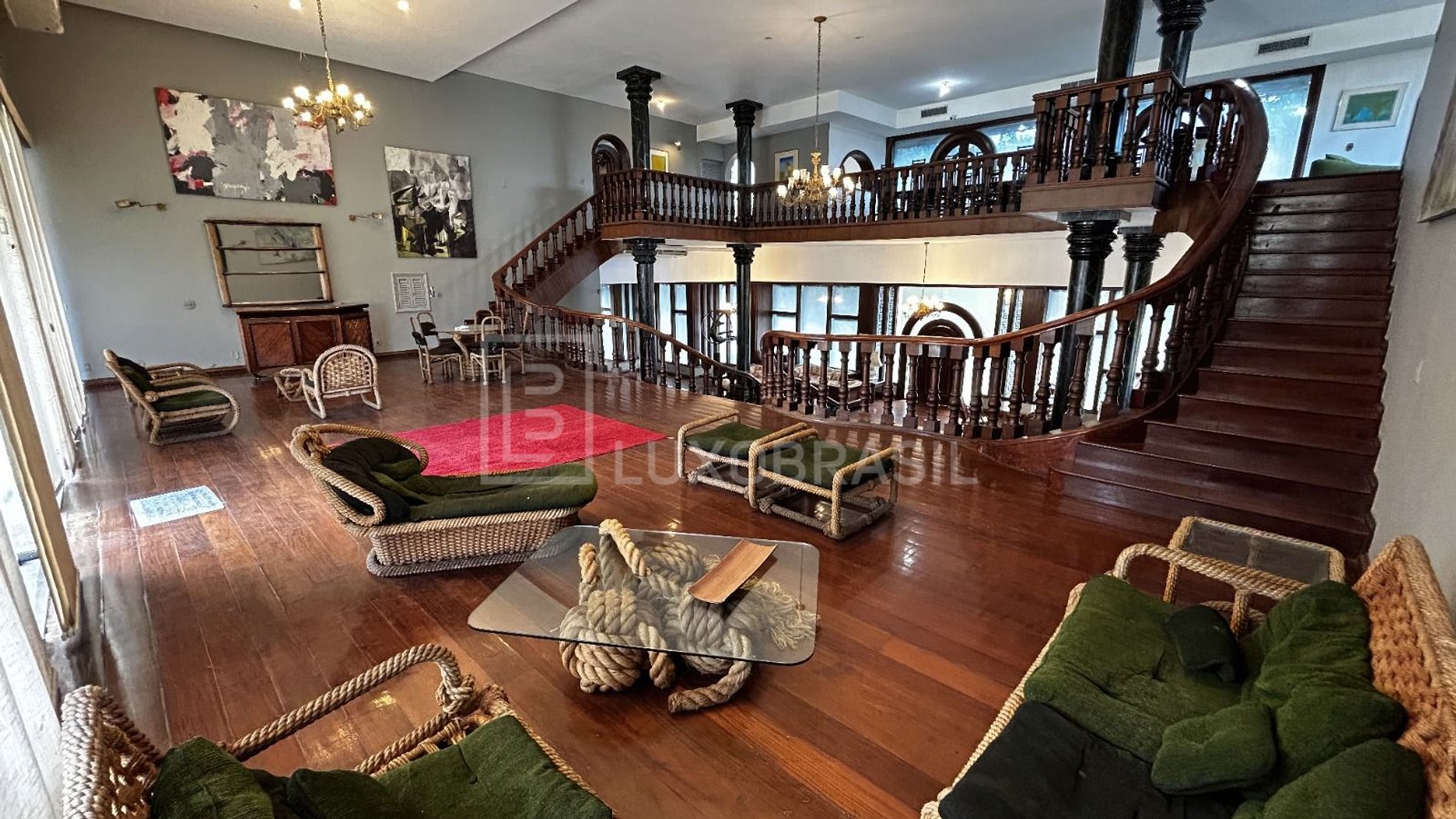Para comodidade, a mansão conta com uma cozinha industrial equipada com um elevador para pratos que percorre todos os andares. Há suítes dedicadas para empregados e caseiro, além de uma espaçosa garagem com espaço para 10 carros. E não podemos deixar de mencionar que possui uma área externa para pouso de helicóptero.
