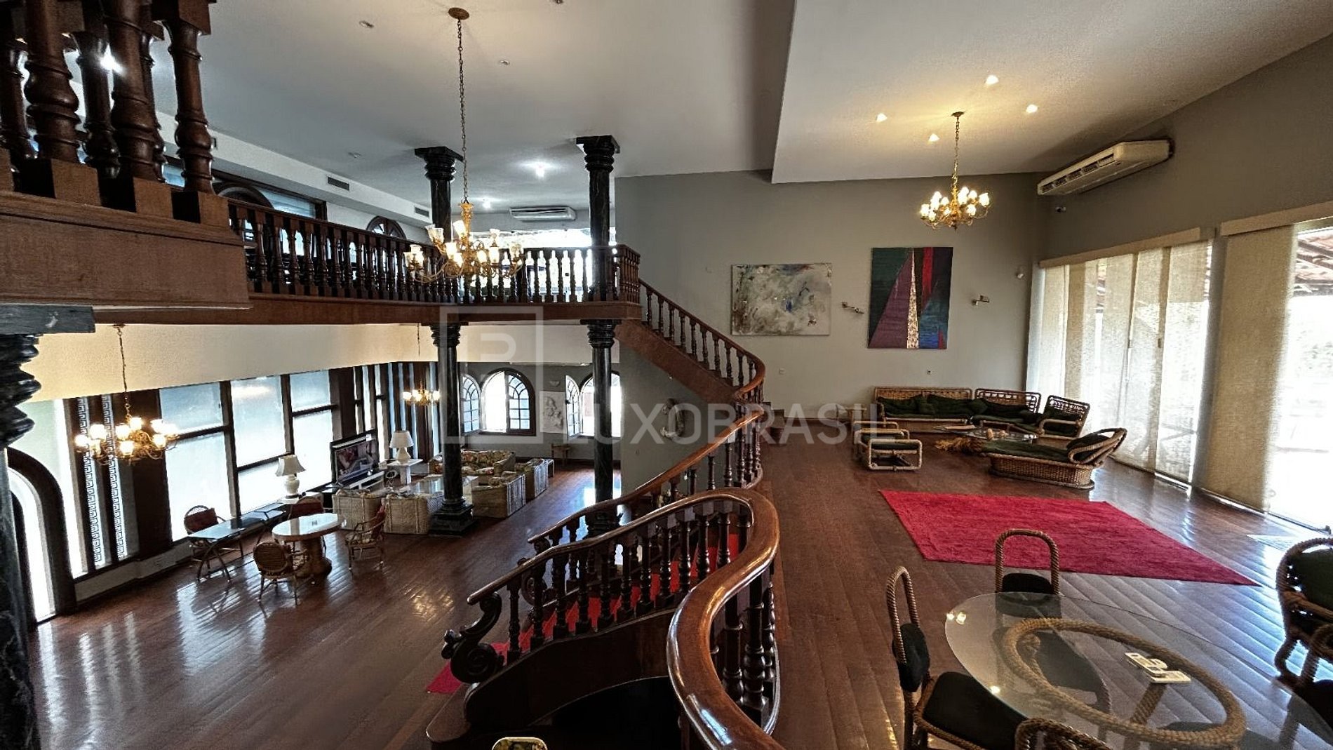 A qualidade dos materiais utilizados na construção é de alto padrão, com portas, janelas e corrimãos em jacarandá e mogno, e armários embutidos de cerejeira em todos os cômodos. A área de lazer é espetacular, composta por uma piscina de 100m2 com cascata e profundidade de 1,80m, além de uma área gourmet com churrasqueira e forno a lenha.