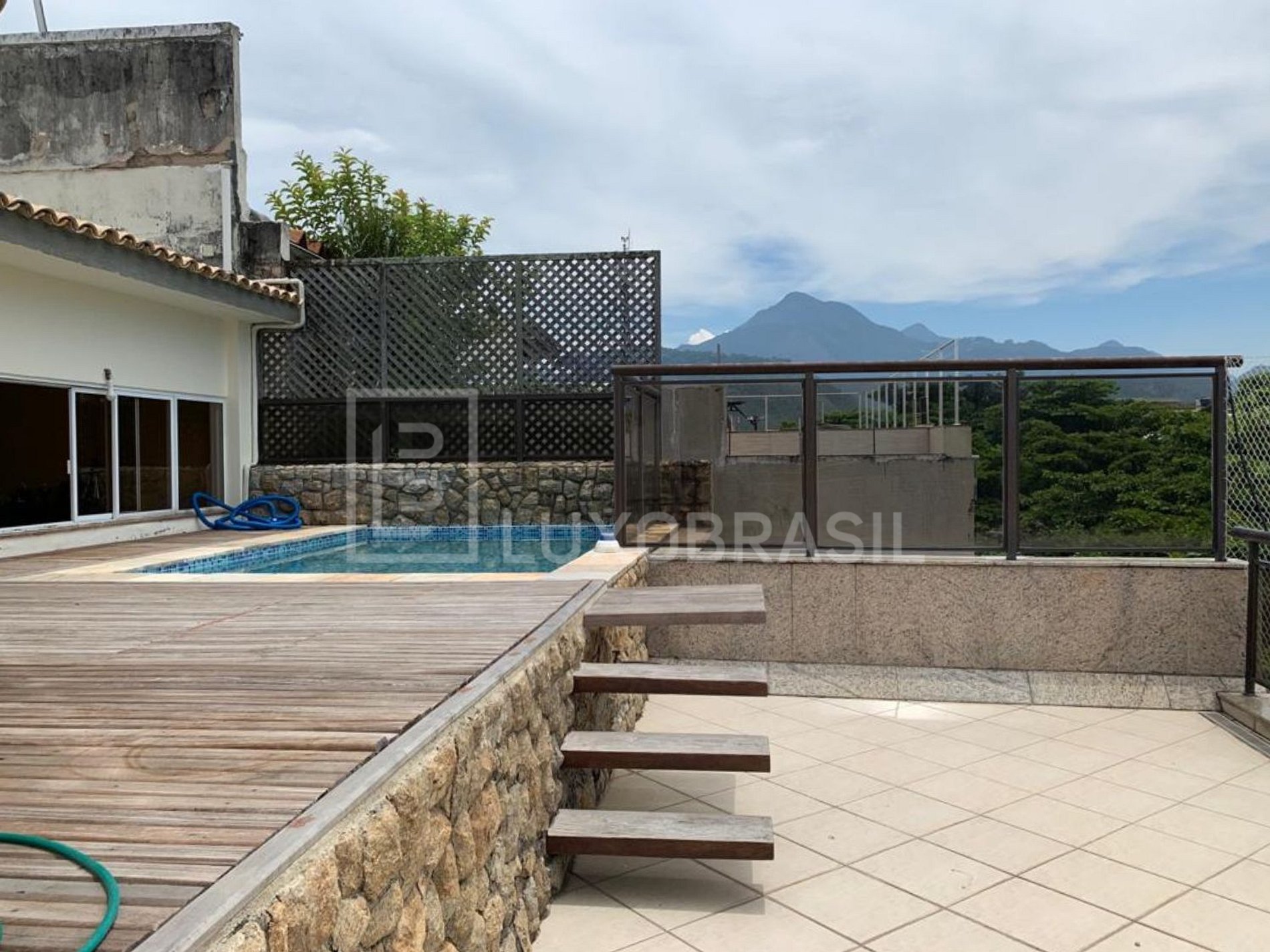 Varandão com piscina privativa e vista deslumbrante da imponente Pedra da Gávea.