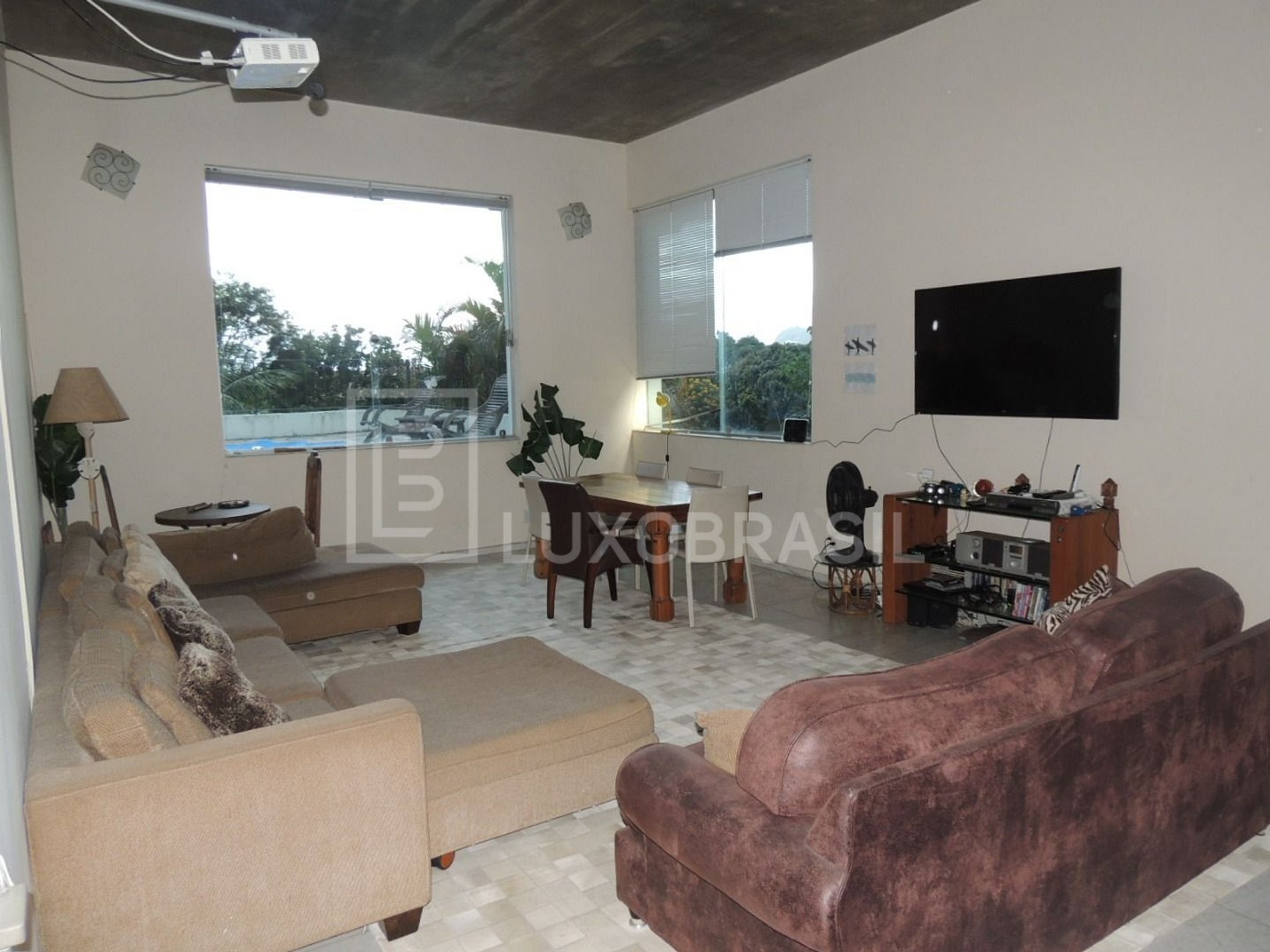 O imóvel possui 04 quartos, 01 sendo suíte, sala de estar ampla, cozinha, piscina, churrascaria e pizzaria, além de um jardim tropical com flores e árvores frutíferas.