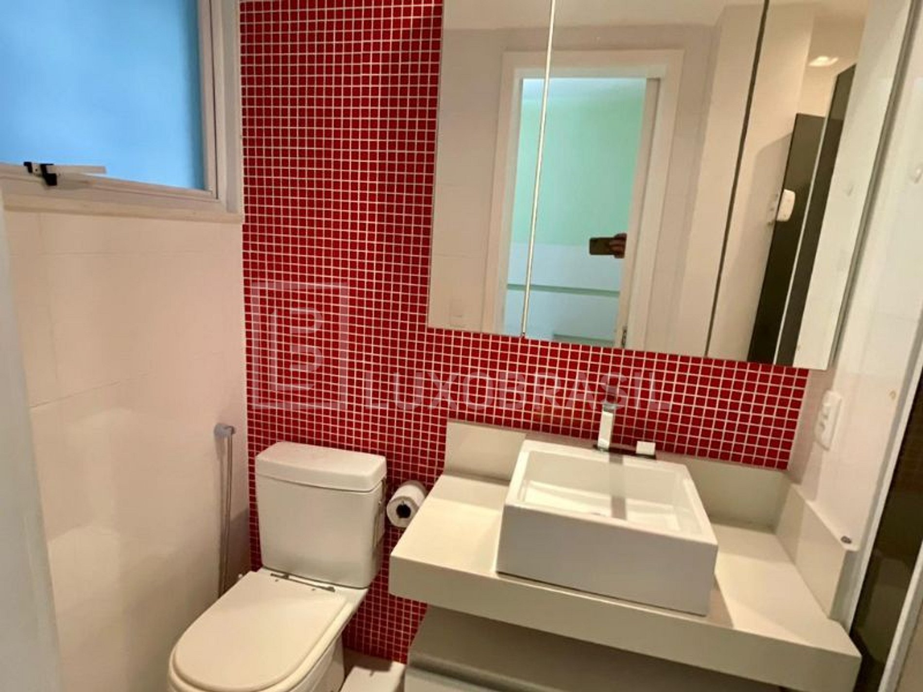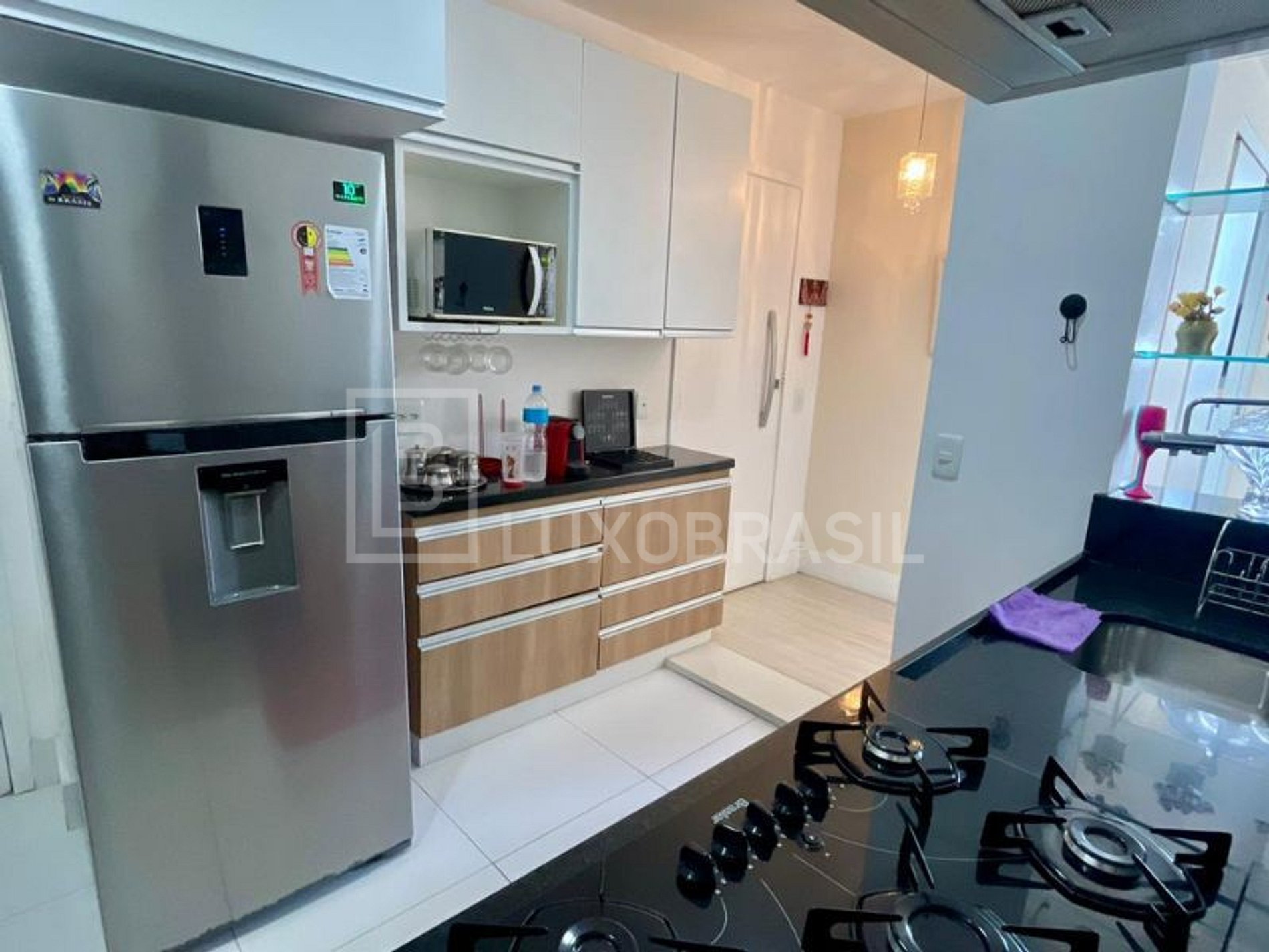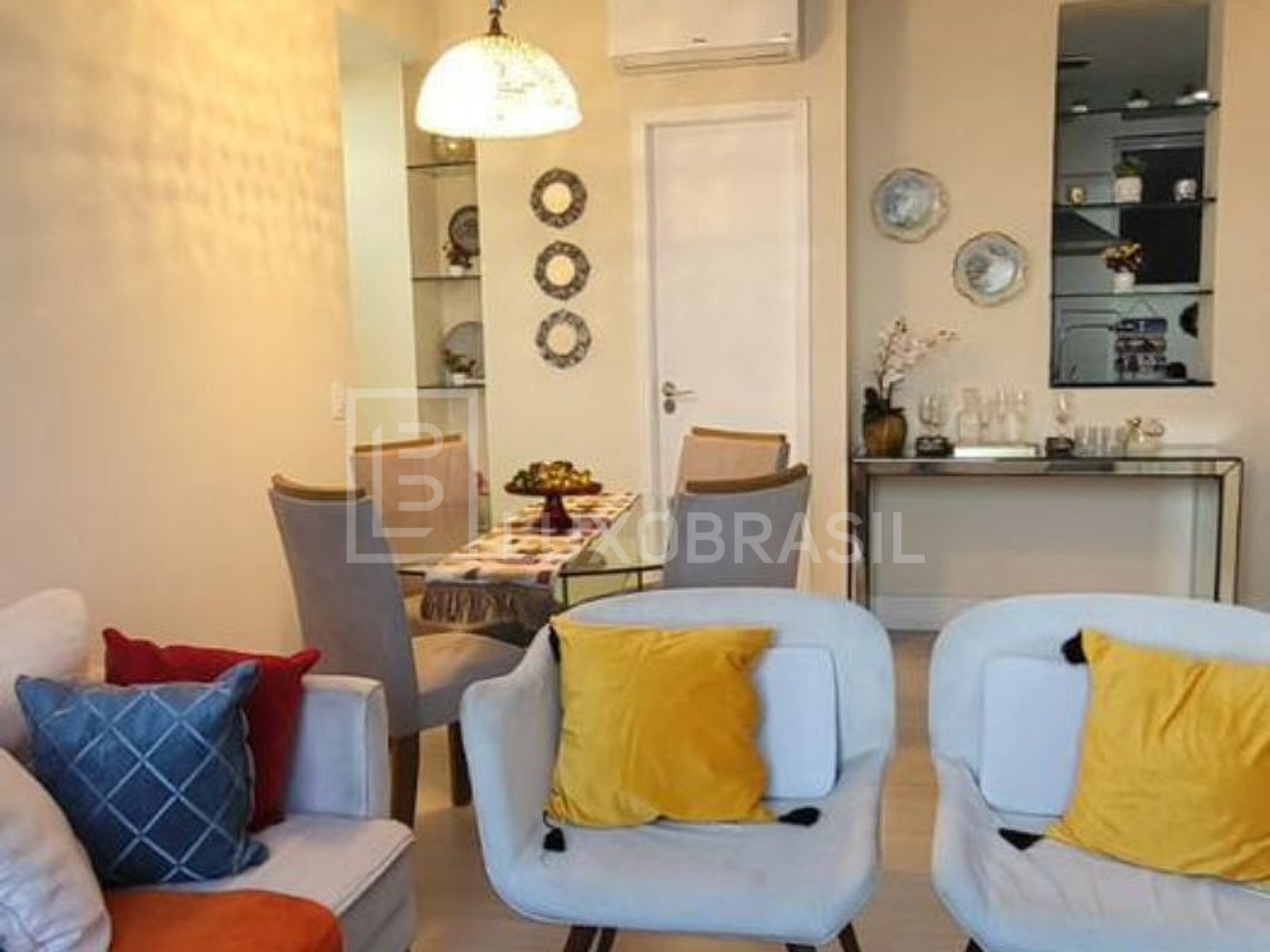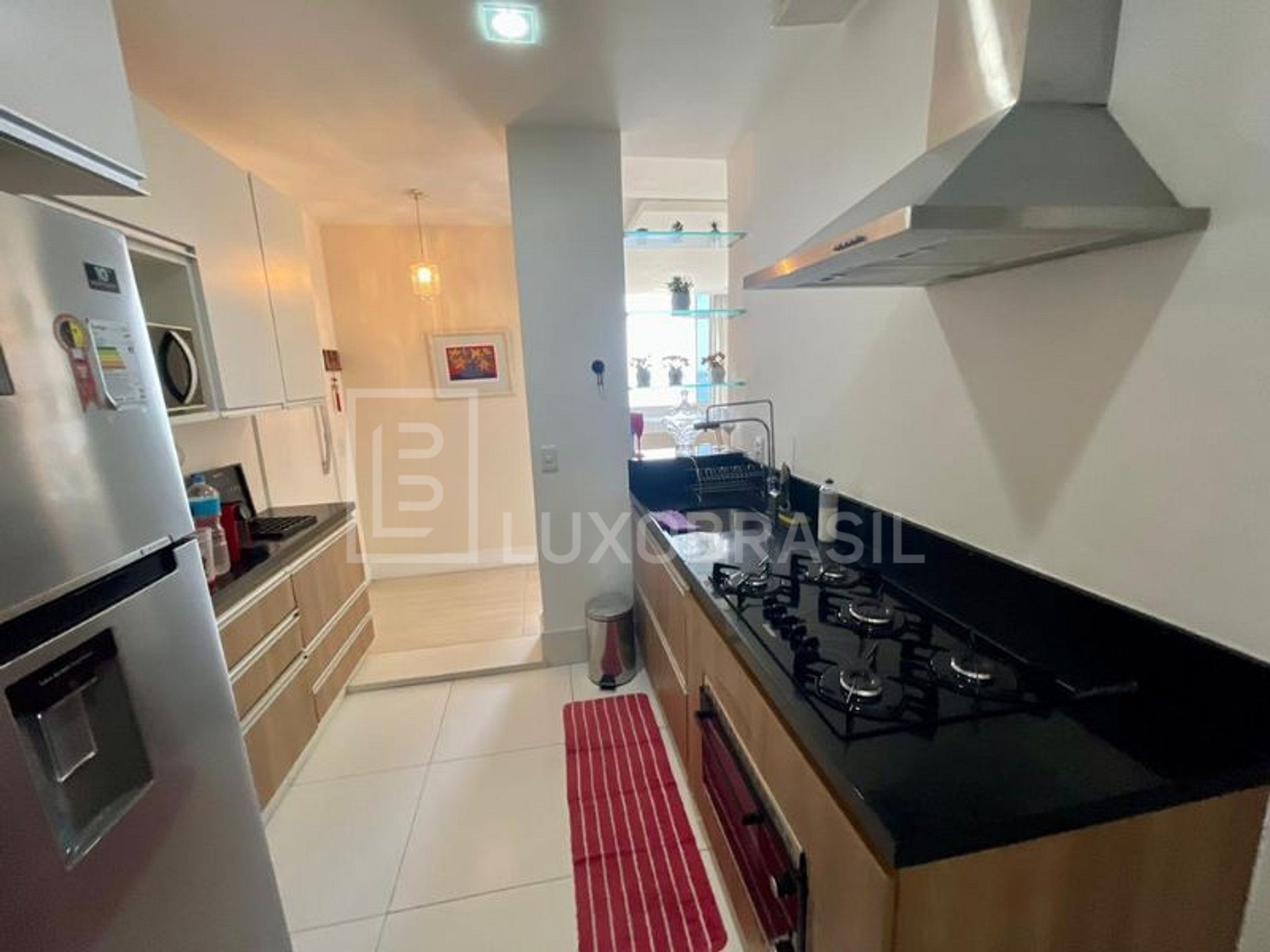 O imóvel, totalmente reformado, dispõe de três quartos, sendo duas suítes, três banheiros e um lavabo. A sala de estar e jantar é integrada à cozinha, criando um ambiente amplo e arejado. Além disso, há uma área de serviço com lavanderia e banheiro para funcionários. Todos os cômodos são com móveis planejados.