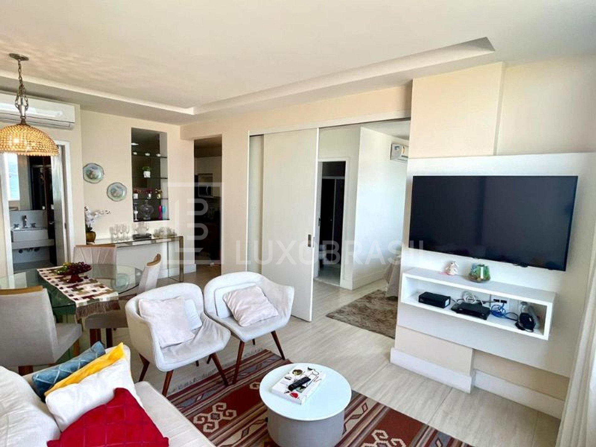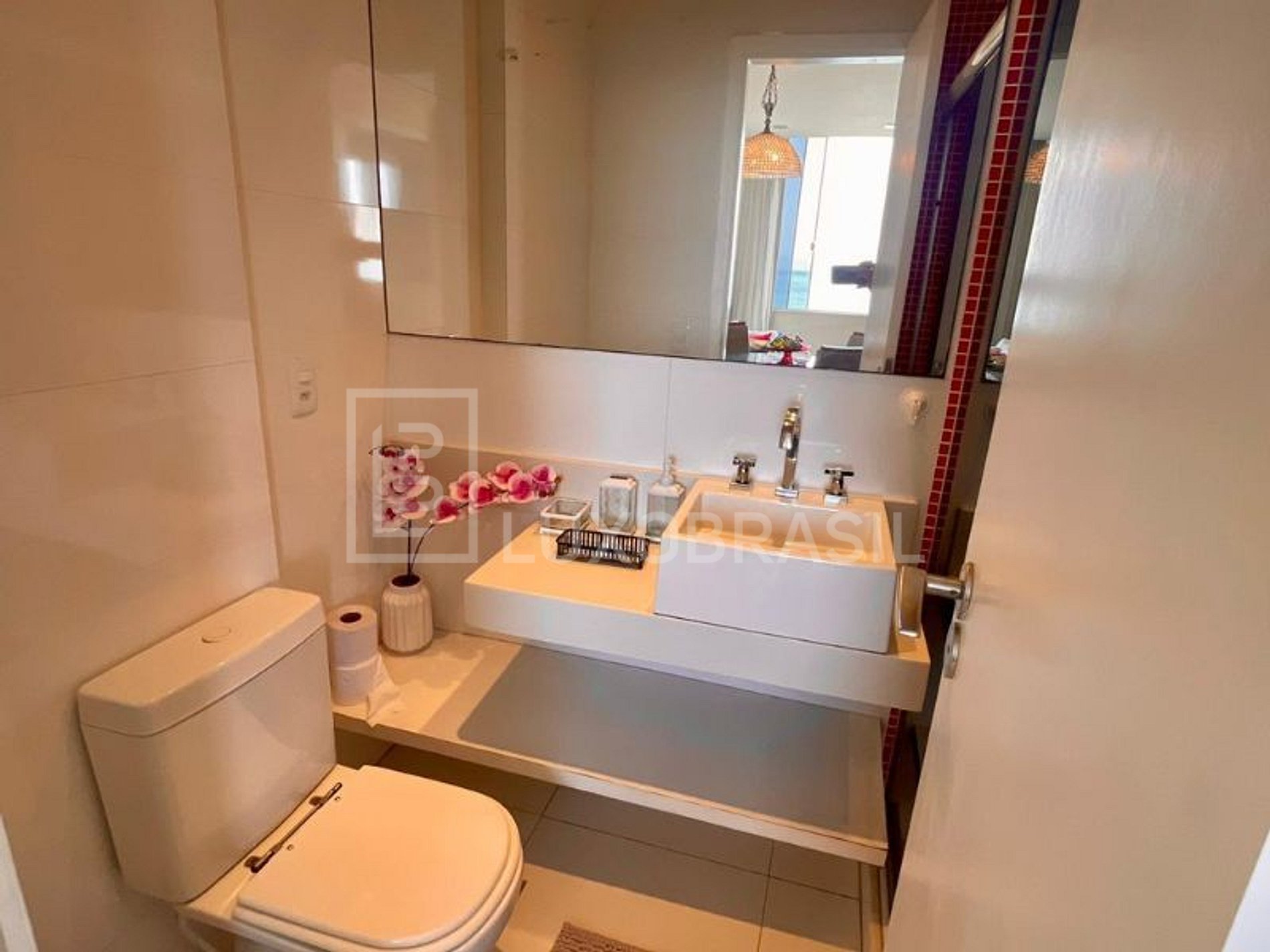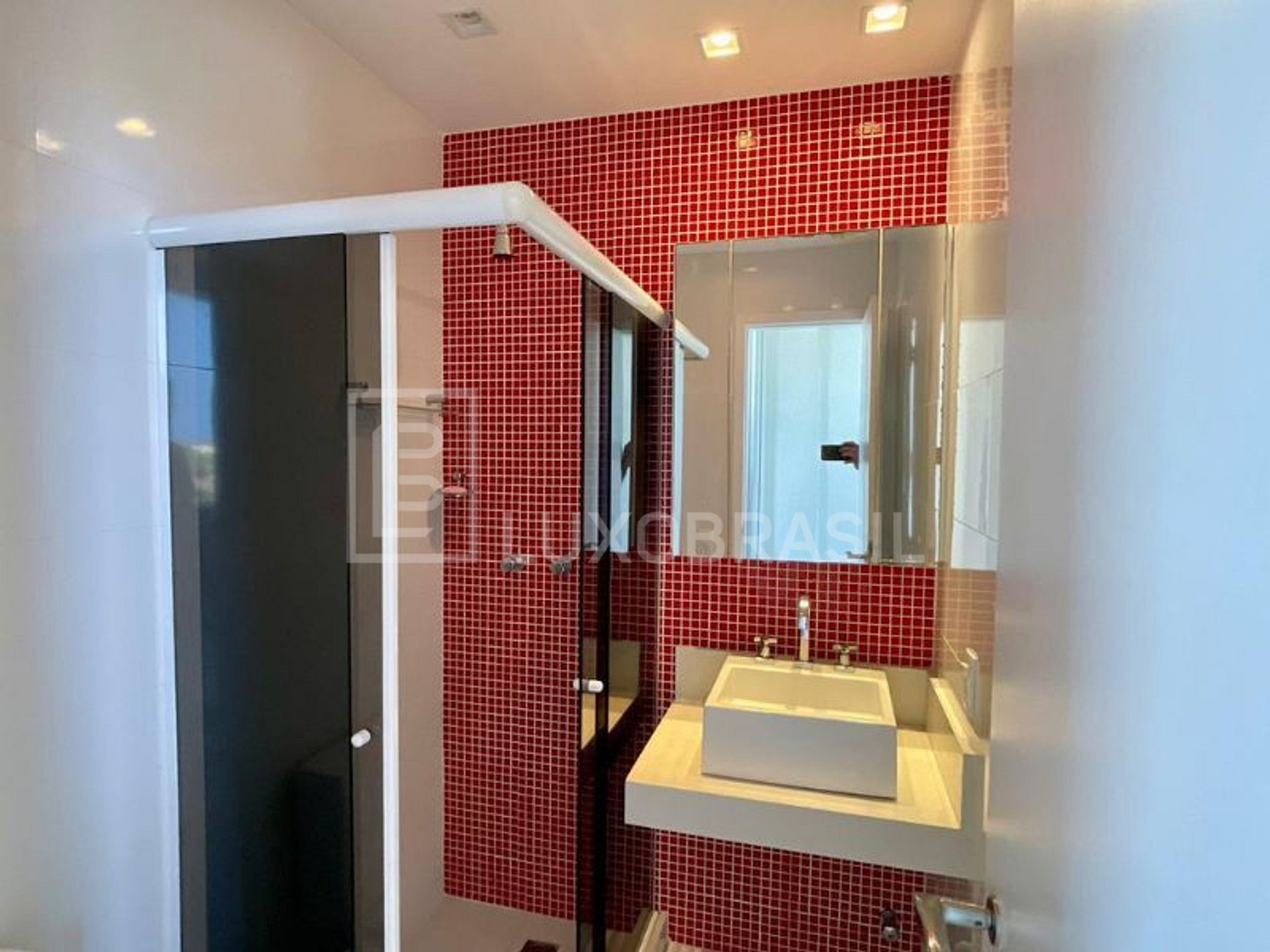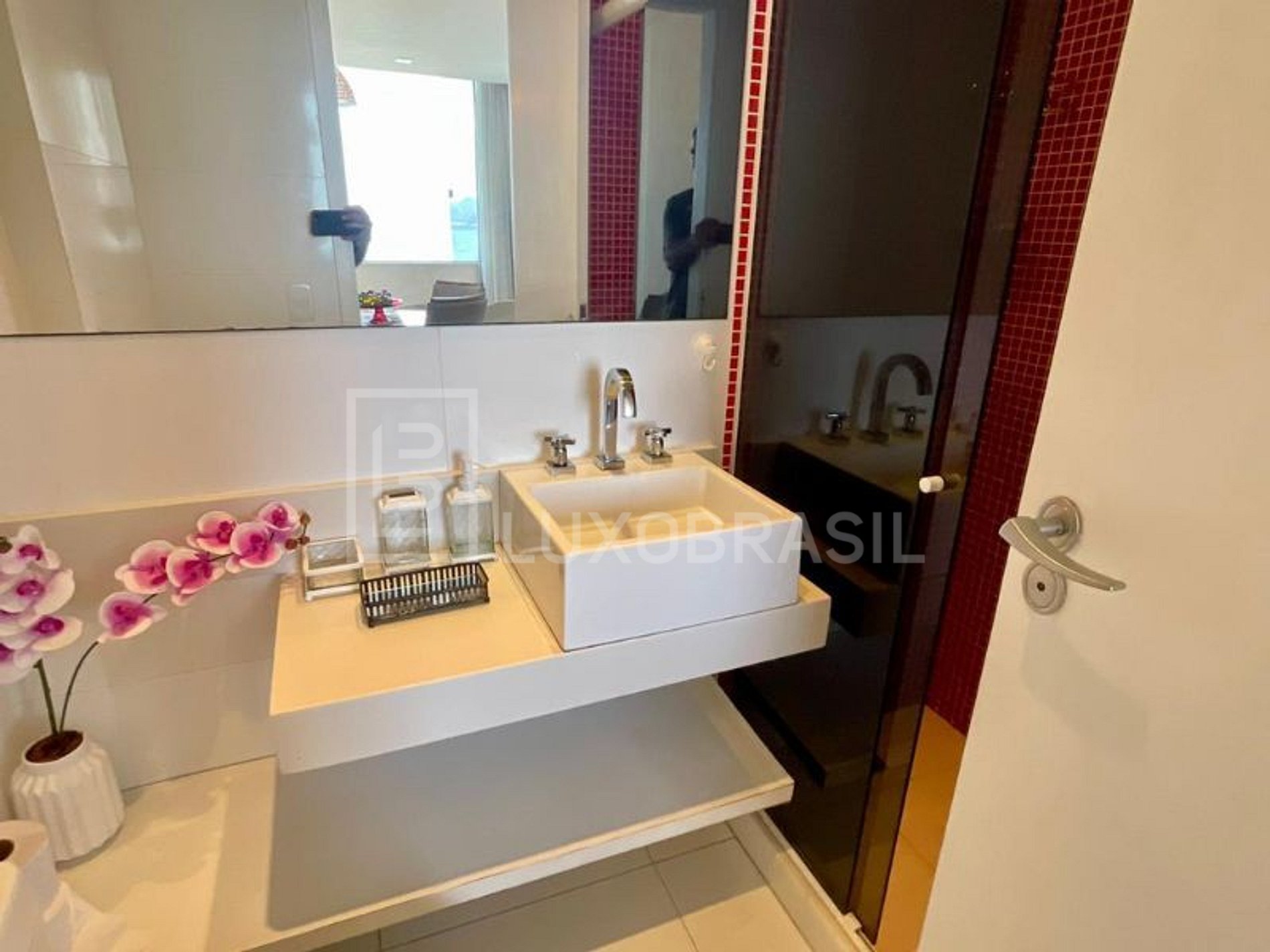 O imóvel, totalmente reformado, dispõe de três quartos, sendo duas suítes, três banheiros e um lavabo. A sala de estar e jantar é integrada à cozinha, criando um ambiente amplo e arejado. Além disso, há uma área de serviço com lavanderia e banheiro para funcionários. Todos os cômodos são com móveis planejados.