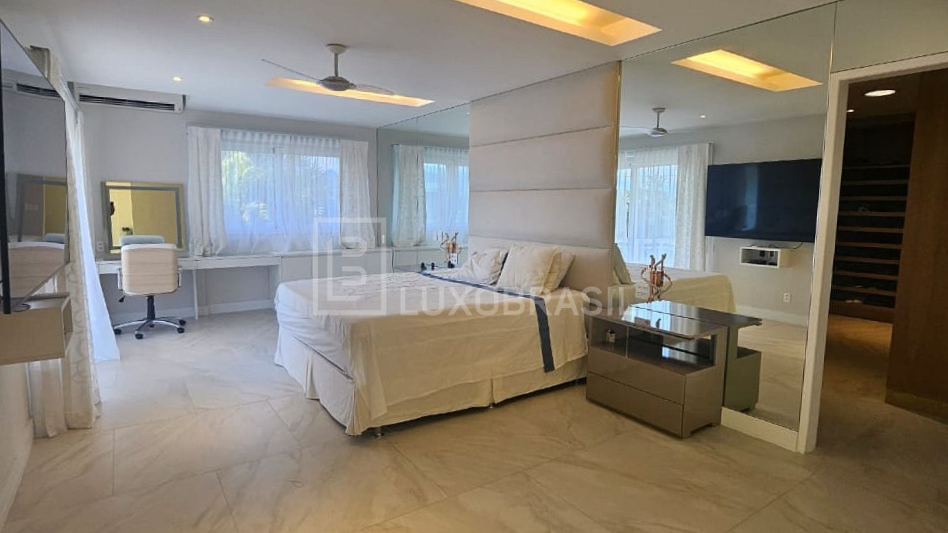 Durante a locação, o closet da suíte máster e a adega ficam trancados.