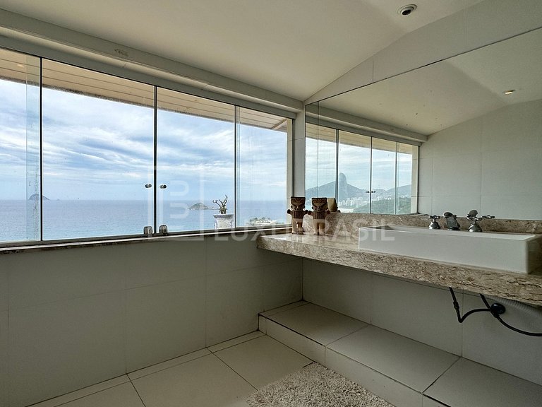 Hall de Entrada: No Hall do imóvel há uma linda vista para uma parede de vidro que deixa o visual externo e a beleza do Rio de Janeiro invadir o Imóvel. No mesmo andar, três suítes esperam para proporcionar um refúgio de conforto. Ao subir a escada para o topo e último andar do imóvel, há duas suítes, cada uma com salões de banho opulentos, oferecendo um verdadeiro retiro de indulgência. Uma varanda com vista panorâmica completa este santuário.
