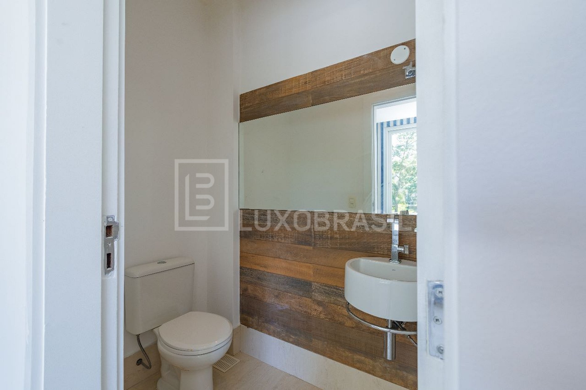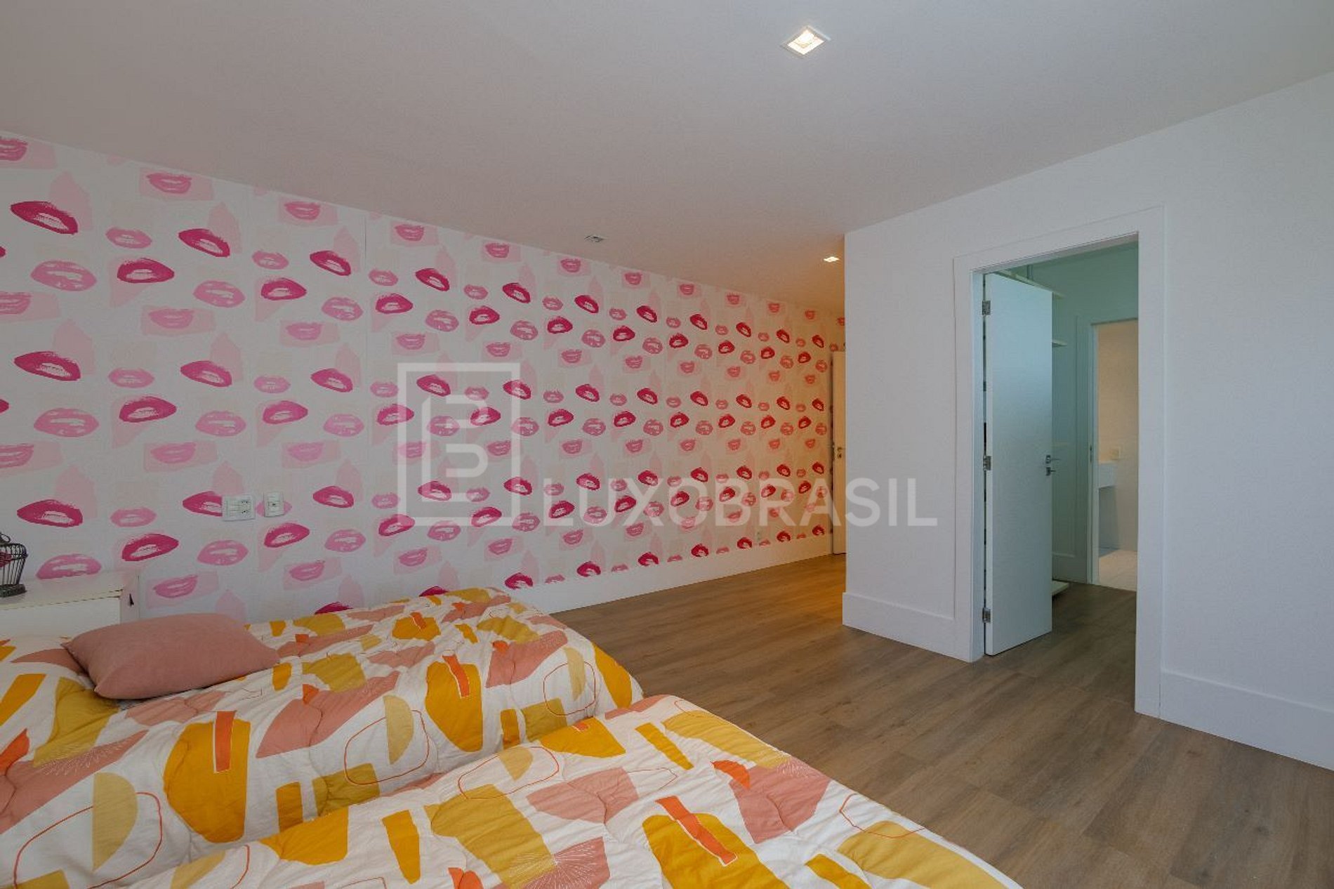 Um estúdio em mezanino oferece uma área versátil que pode ser adaptada como escritório ou sala de estudos. A casa dispõe de quatro suítes, cada uma com seu próprio charme e elegância distintos. A suíte master, espaçosa e luxuosa, inclui um escritório privativo, proporcionando um ambiente tranquilo para trabalho em casa.