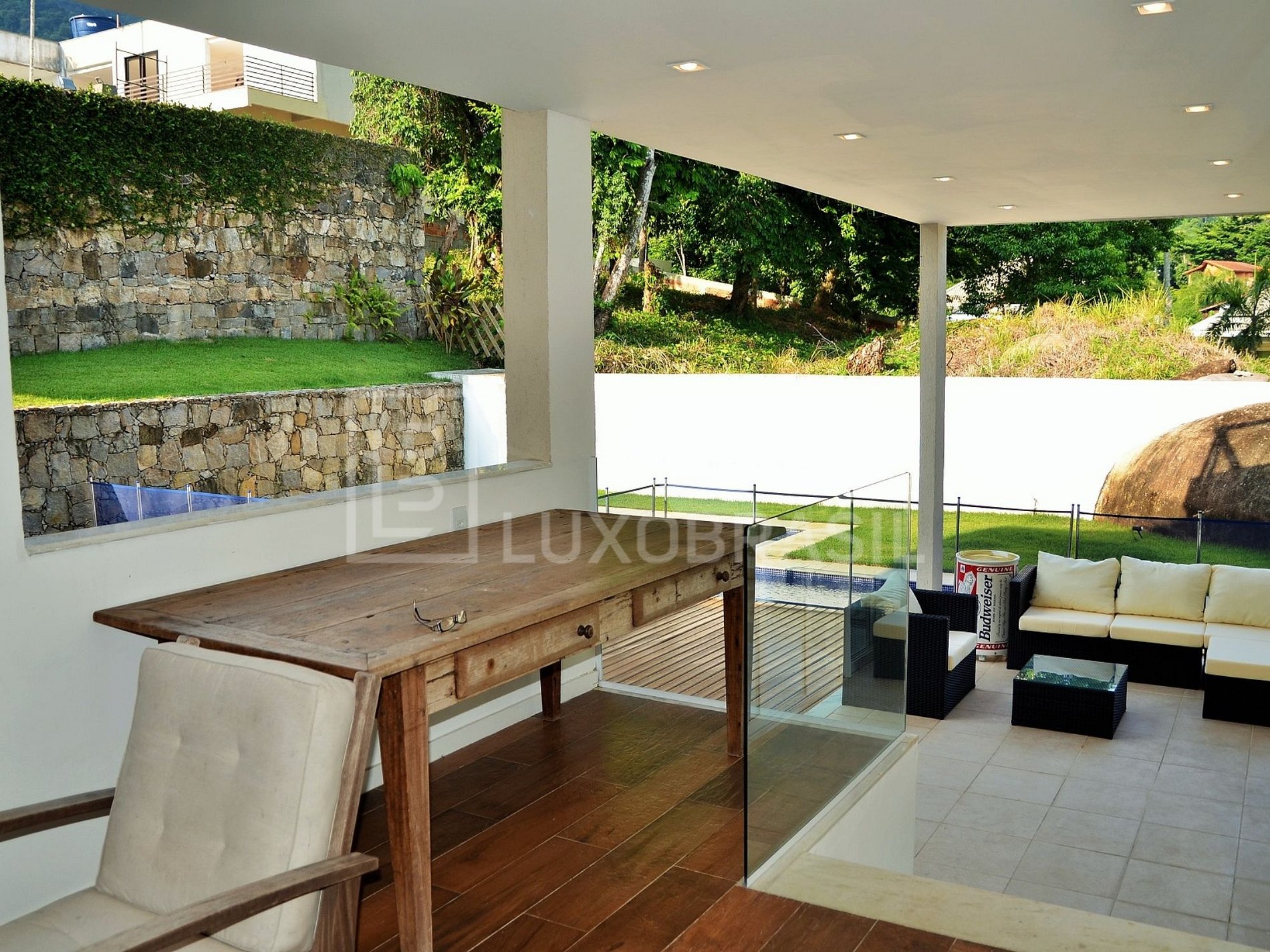 Situada em um condomínio fechado no prestigiado bairro do Itanhangá, o Condomínio Greenwood, que dispõe de portaria e segurança 24 horas com monitoramento, além da área de lazer com churrasqueira, lindos jardins, piscina, quadra de tênis, quadra polivalente, parquinho e quadra de vôlei de areia.