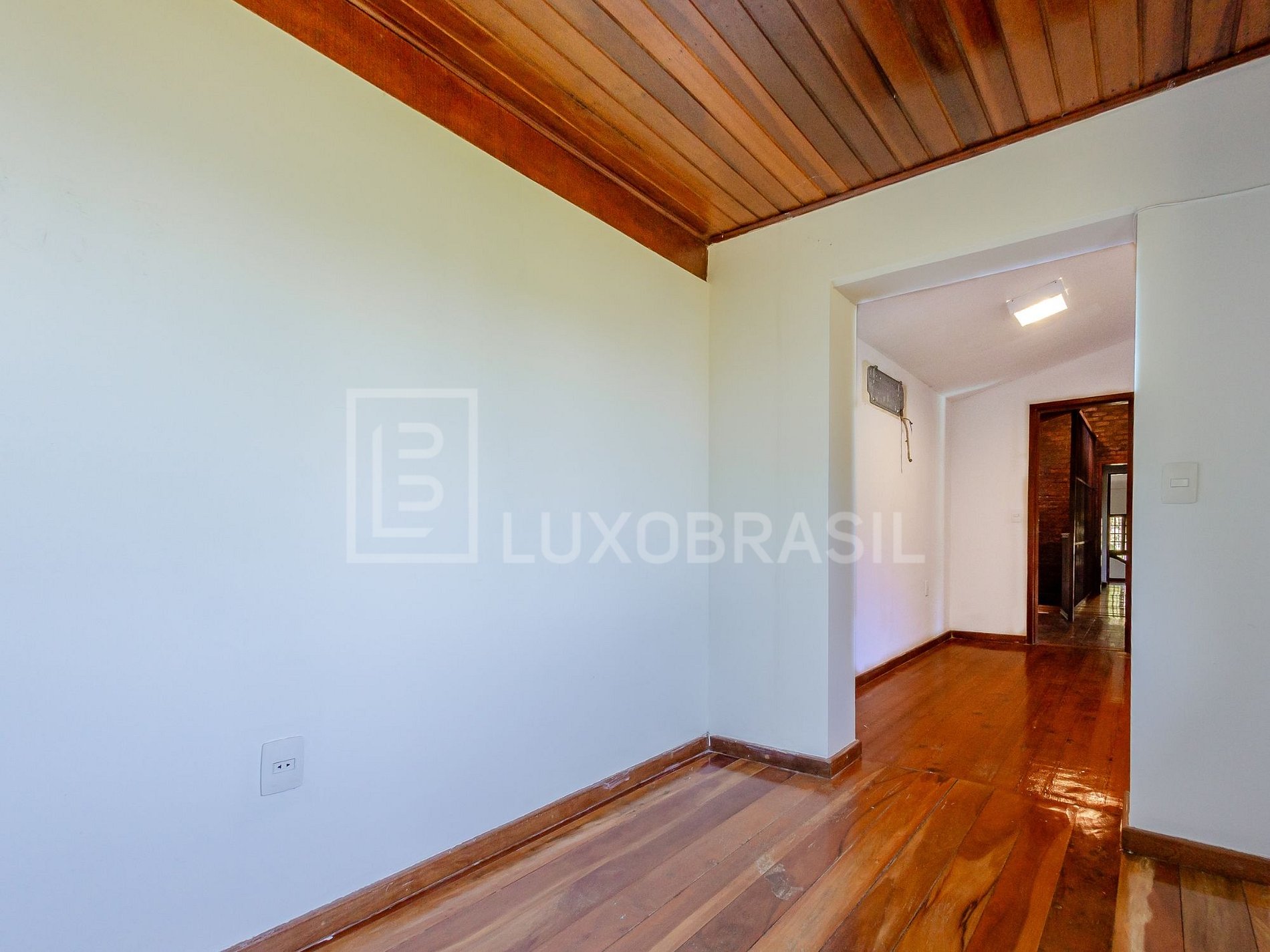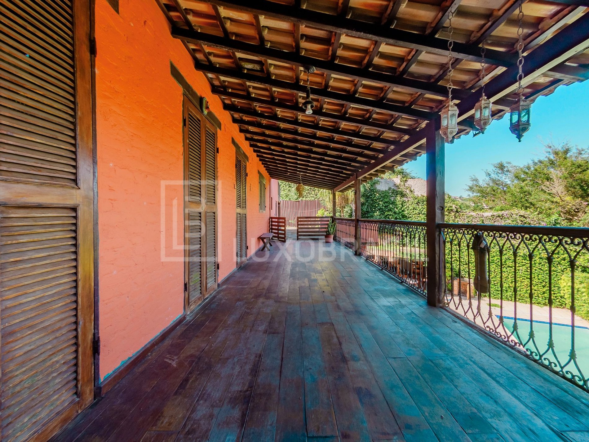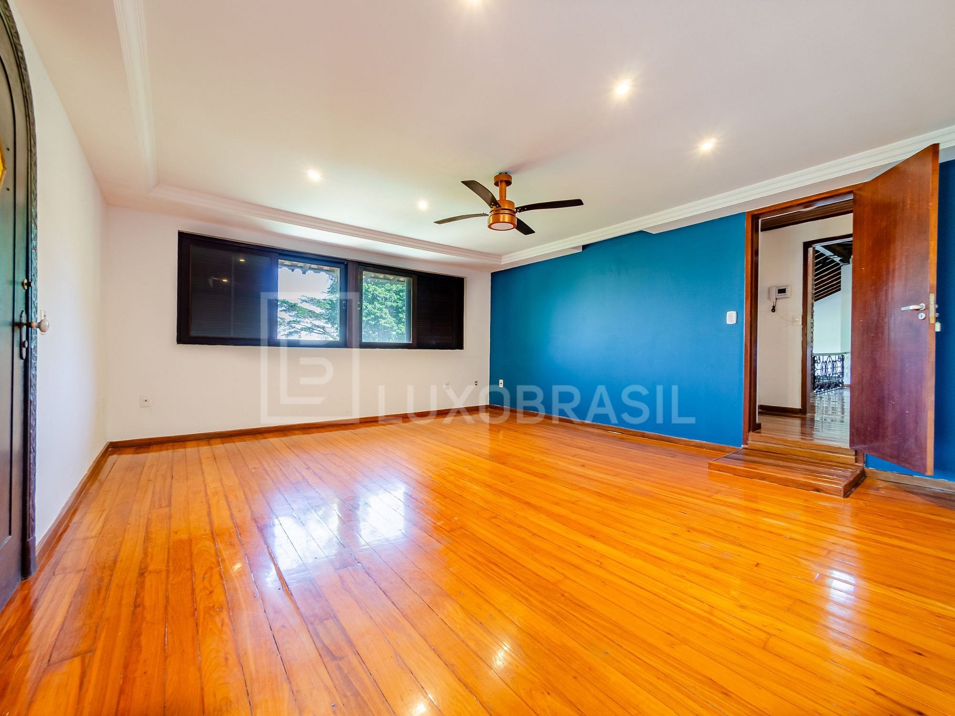 Para maior comodidade, a casa conta ainda com uma unidade de apoio composta por quarto e sala, perfeita para funcionários ou uso multifuncional. A garagem coberta para até quatro veículos complementa esta residência que alia sofisticação, espaço e funcionalidade.