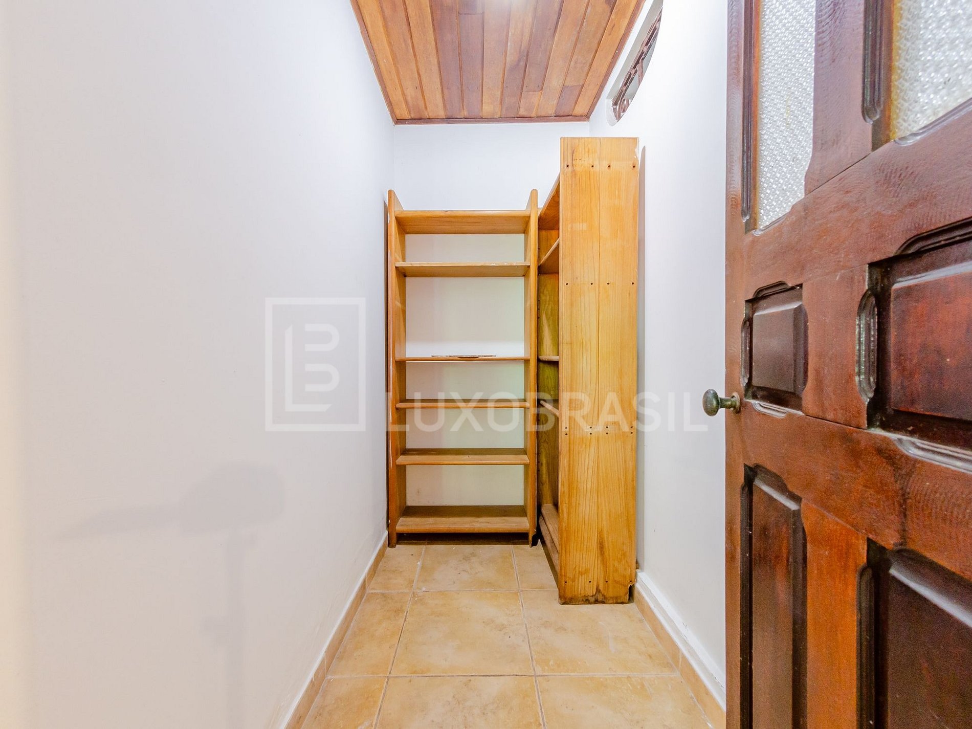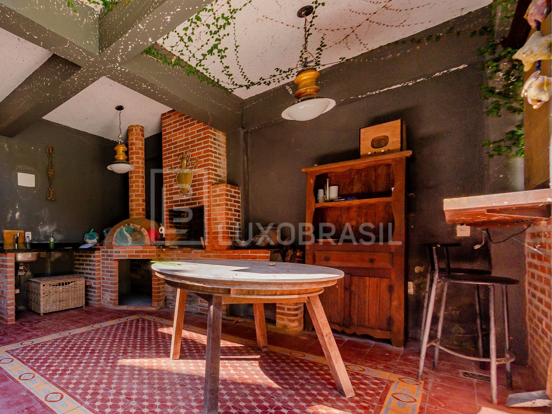 O nível inferior é dedicado ao lazer e à recepção. A área externa abriga uma piscina ampla, um quintal espaçoso, área gourmet completa com churrasqueira, forno de pizza e fogão a lenha. Há também uma adega subterrânea — um charme à parte —, além de uma suíte de hóspedes independente e banheiro de apoio.