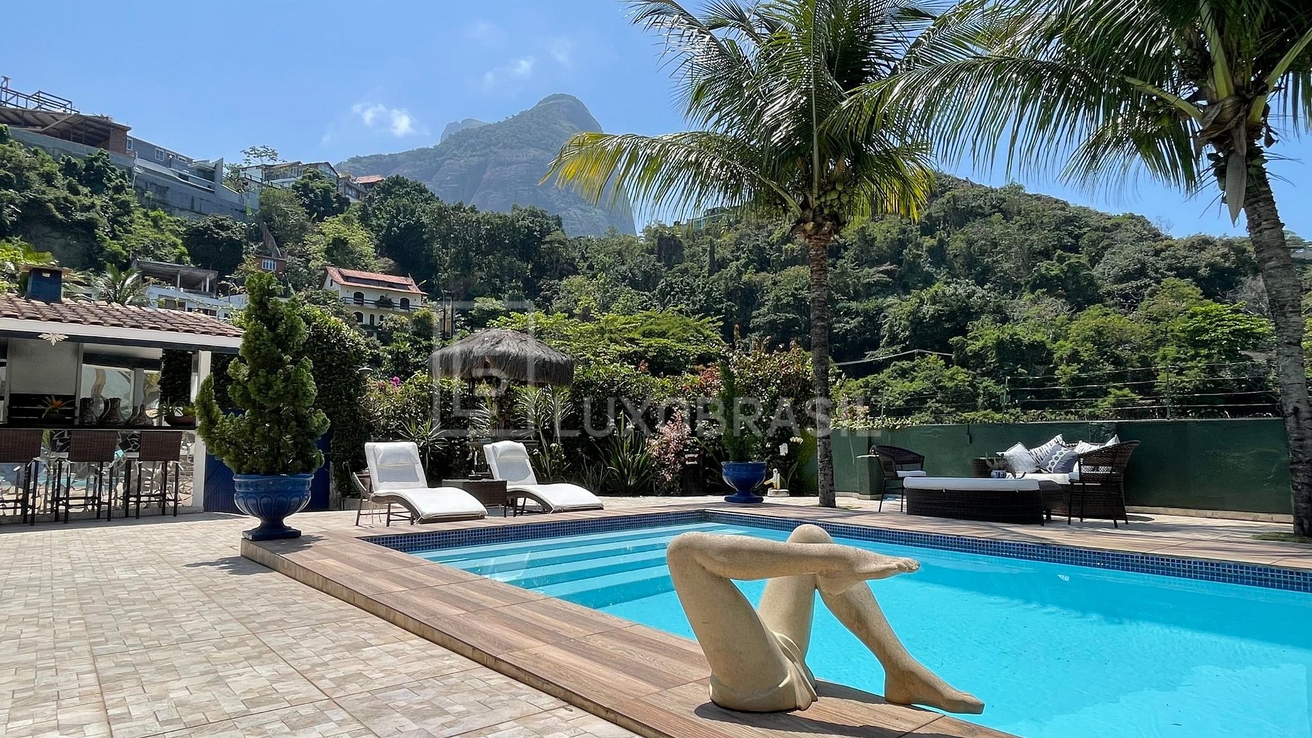 LUXOBRASIL vende esta singular residência na Praia dos Amores, um verdadeiro refúgio paradisíaco na Barra da Tijuca. Localizada em condomínio fechado, a propriedade oferece vistas deslumbrantes para a icônica Pedra da Gávea e para as imponentes mansões da Joatinga.