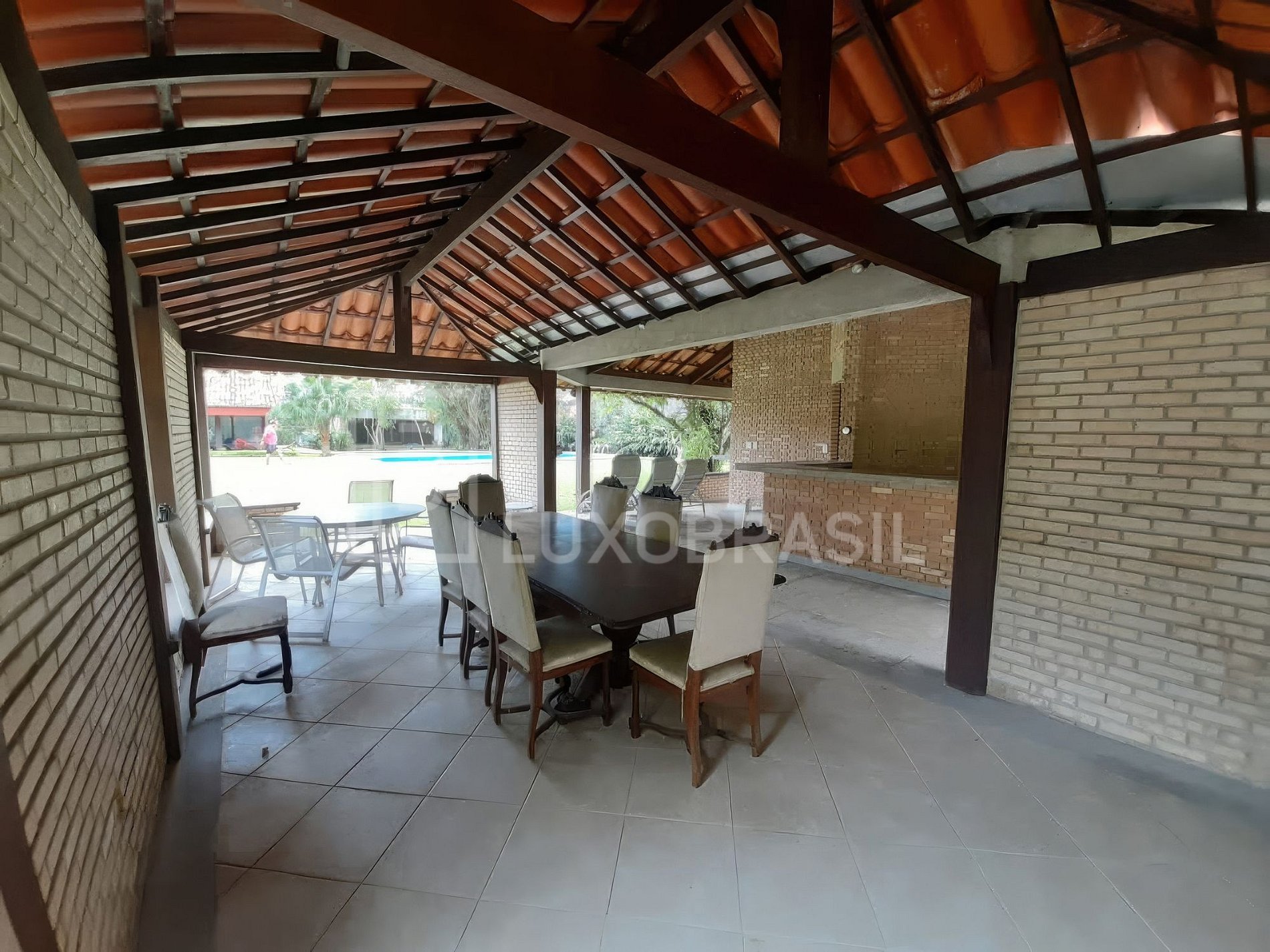 Com 800 m² de área construída e 3.150 m² de terreno, a casa combina amplitude, conforto e elegância. Distribuída em dois pavimentos com telhado colonial, possui espaços generosos e integrados: duas salas de estar, sala de jantar com vista para o jardim, sala de TV, escritório, living com lareira, varandas, espaçosa cozinha com bancada em mármore e armários planejados, além de área de serviço com duas dependências completas. São três amplas suítes, sendo possível a criação de uma quarta suíte (banheiro já pronto), além de uma charmosa casa de hóspedes com uma suíte independente. No total, são 11 banheiros e duas escadas (social e de serviço), garantindo conforto e funcionalidade.