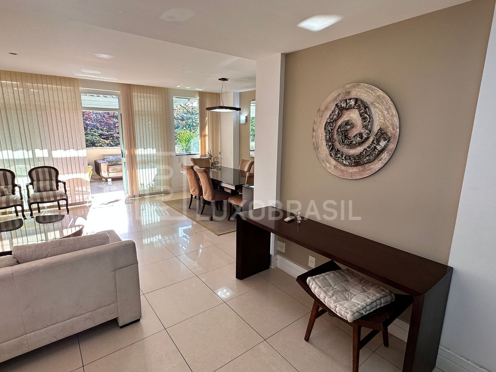 Com ambientes generosos e bem distribuídos, o imóvel conta com salas de estar, jantar e almoço, lavabo, copa, cozinha planejada, home theatre, closet e ampla varanda. As cinco suítes são equipadas com armários embutidos e garantem conforto e privacidade.