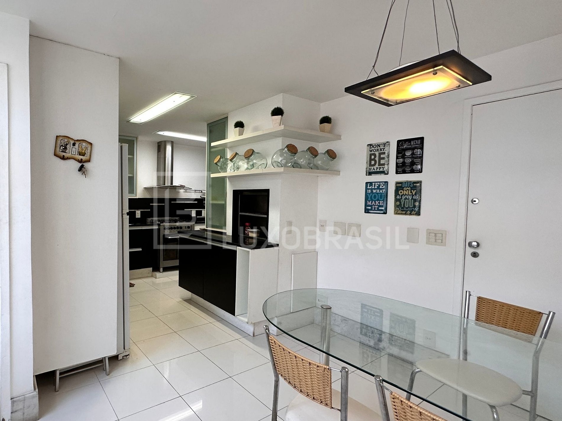 Com ambientes generosos e bem distribuídos, o imóvel conta com salas de estar, jantar e almoço, lavabo, copa, cozinha planejada, home theatre, closet e ampla varanda. As cinco suítes são equipadas com armários embutidos e garantem conforto e privacidade.