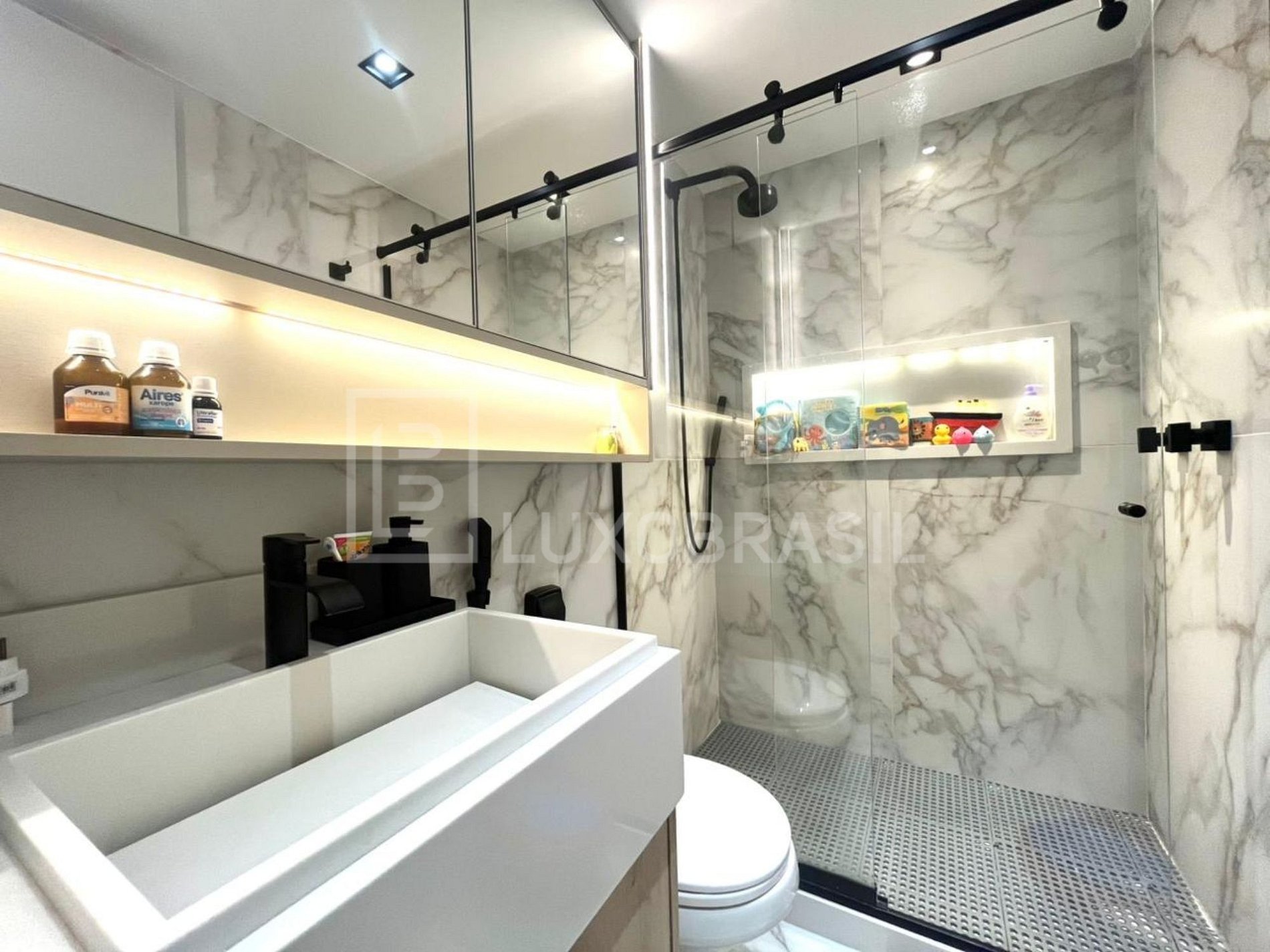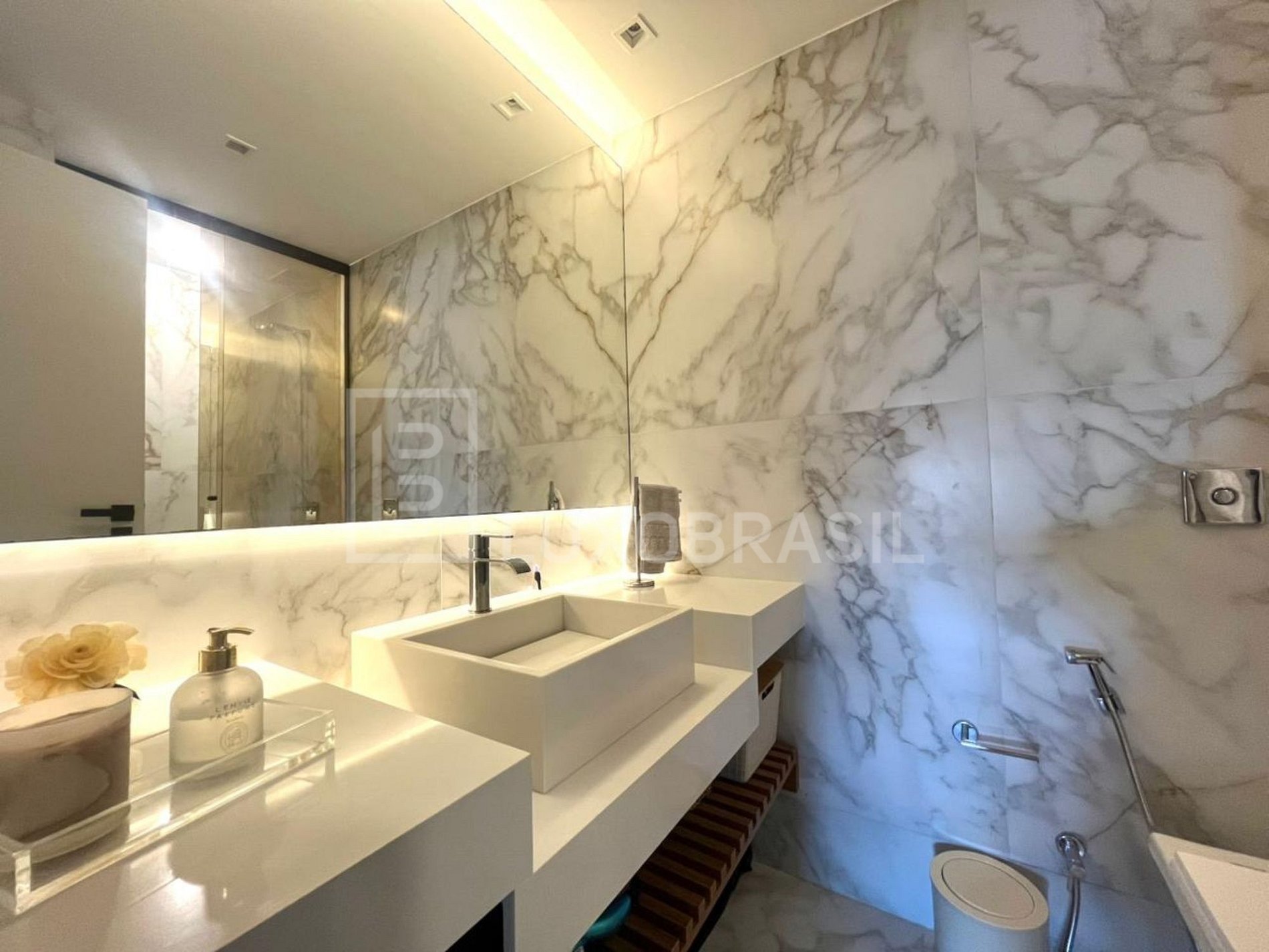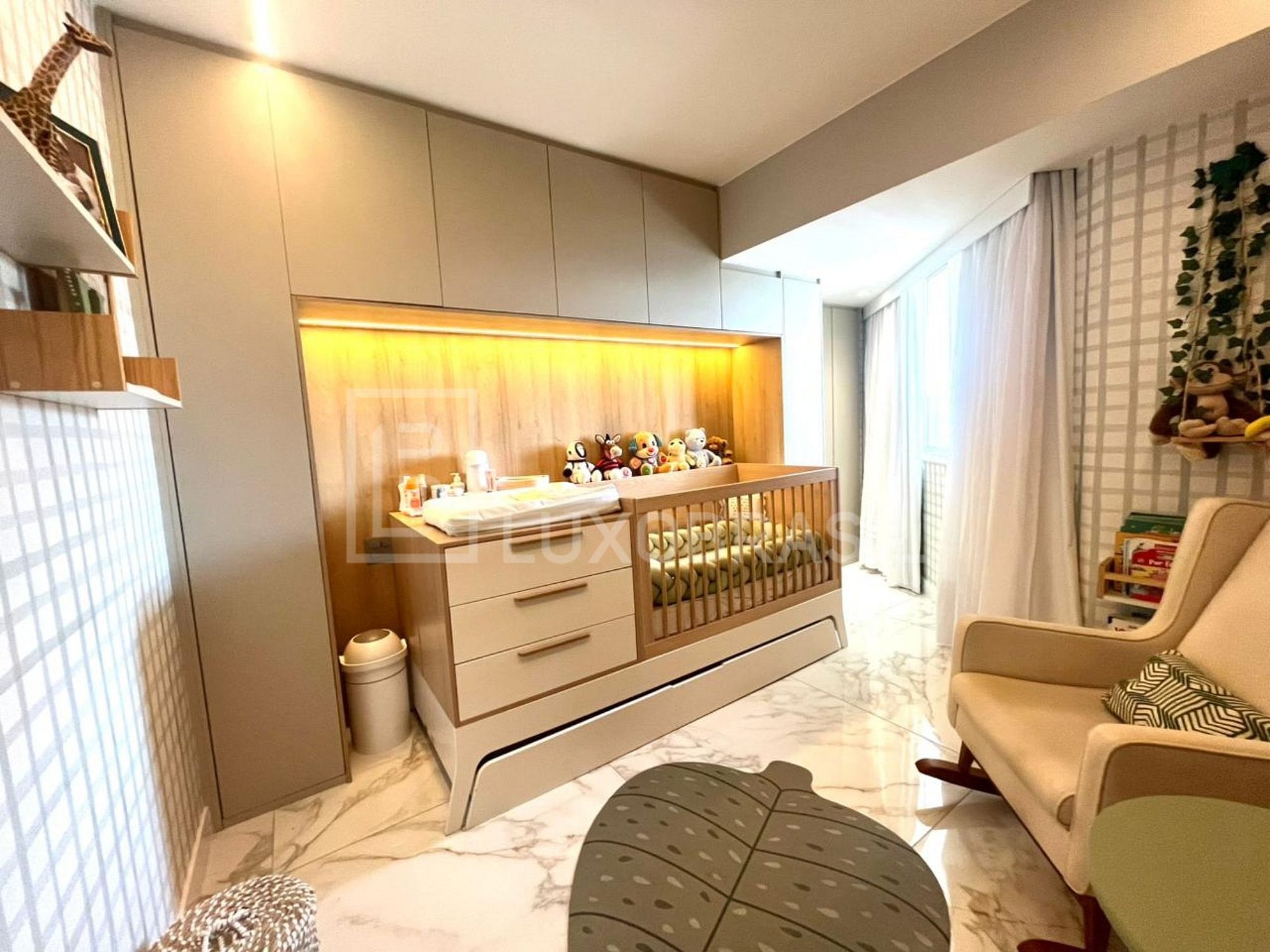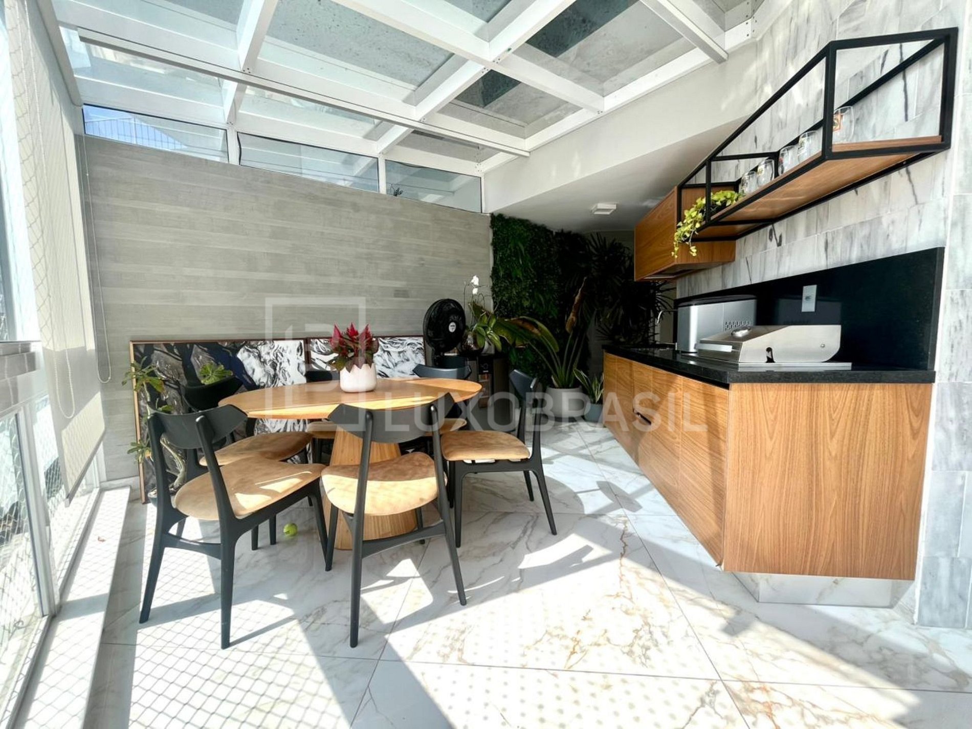 A cozinha é totalmente equipada e planejada para oferecer praticidade e sofisticação. O imóvel dispõe ainda de área de serviço completa e duas vagas de garagem.