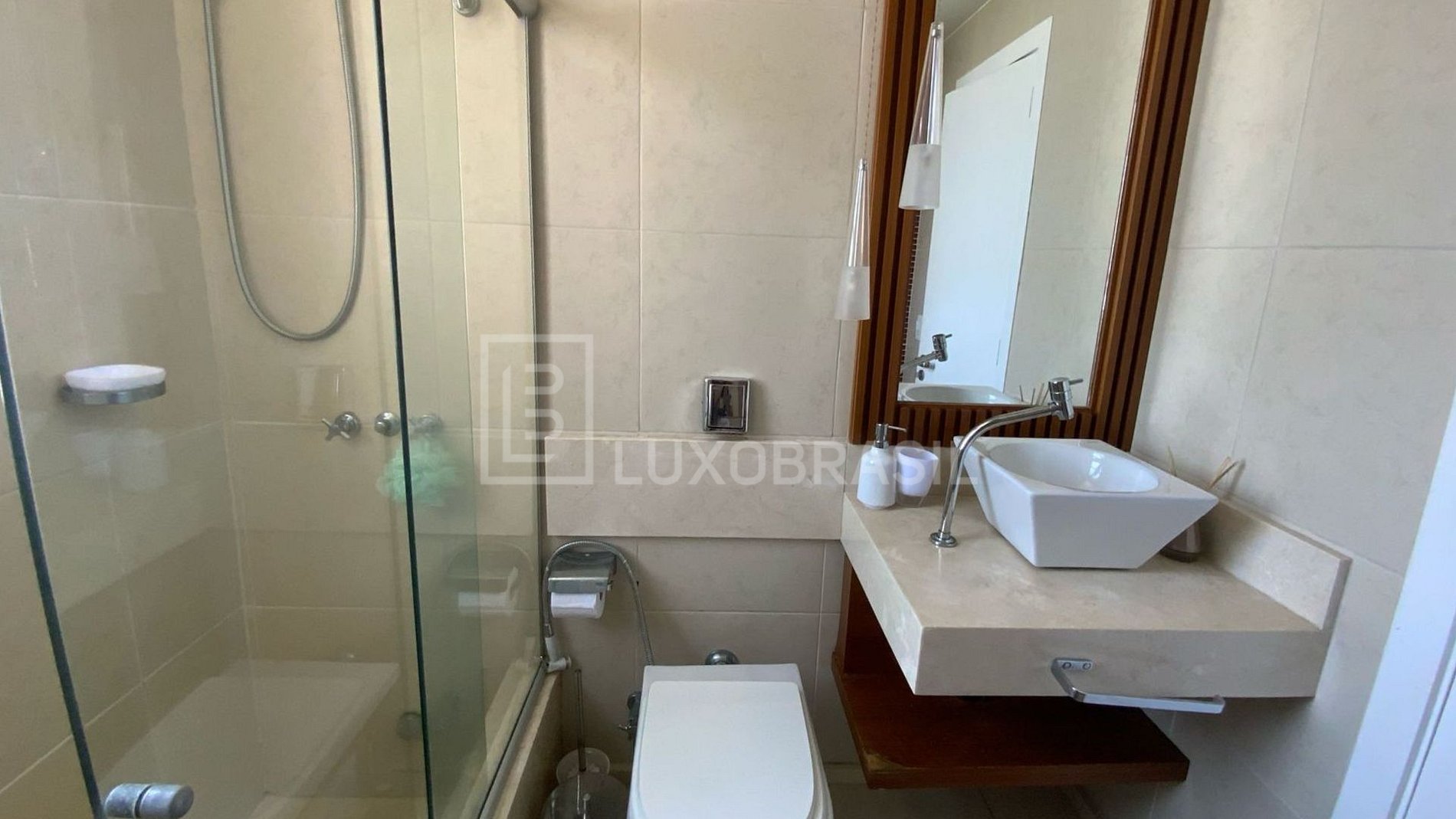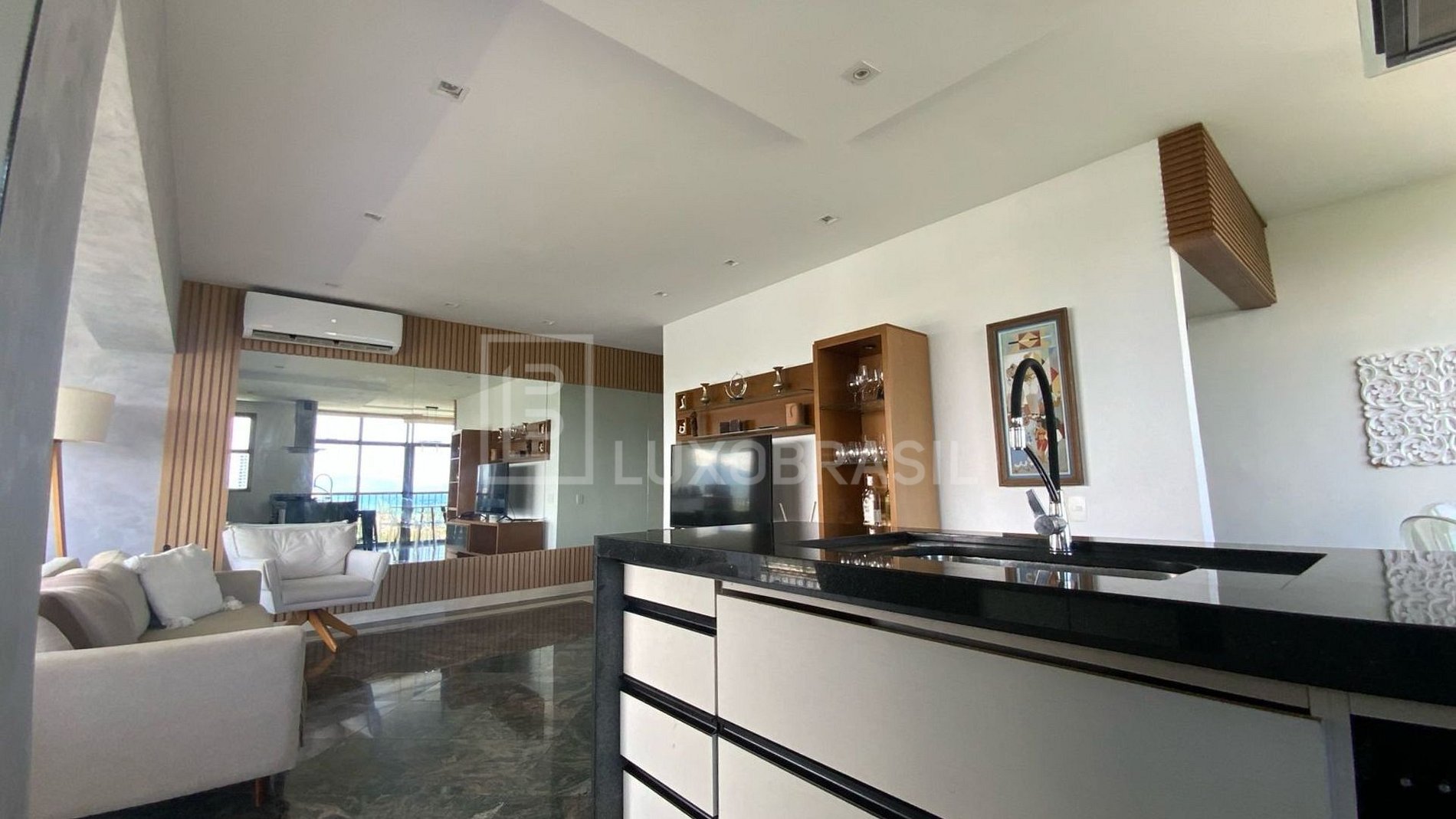 Com 02 suítes, a suíte principal conta com cama de casal, e a segunda suíte possui um sofá-cama, acomodando confortavelmente até 04 pessoas. A sala de estar e sala de jantar são integradas a cozinha com conceito aberto, toda equipada, os ambientes foram pensados para promover bem-estar e funcionalidade. As grandes janelas oferecem vistas panorâmicas do mar e da lagoa, garantindo luminosidade natural e momentos inesquecíveis. A suíte principal ainda conta com uma varanda charmosa que integra uma prática área de lavanderia, para maior conveniência.